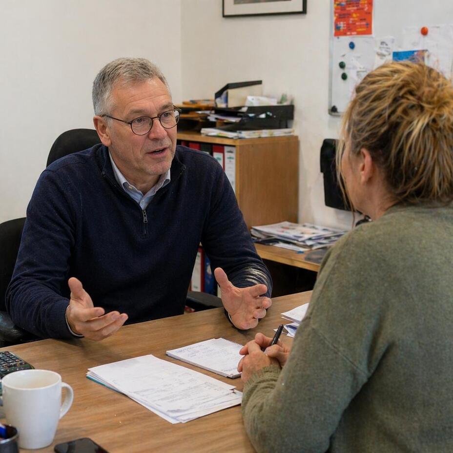 Goed dat hij belt. Hier lopen veel ondernemers op vast. Wat lukt wel? Wat kan nog niet? We kijken samen hoe we de adviezen van de bedrijfsarts kunnen toepassen. Kleine stappen. Werk dat bij haar past en ook waarde heeft voor hem. Het gaat niet om veel. Het gaat om ritme. Geen grote sprong, maar kleine stappen.